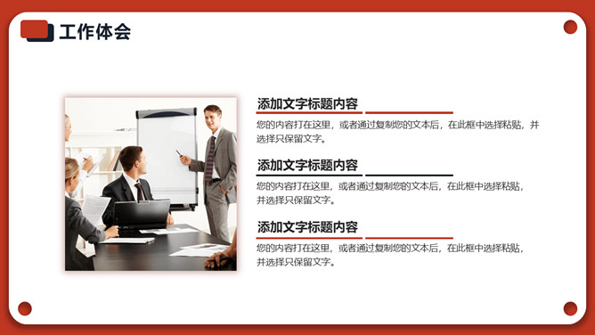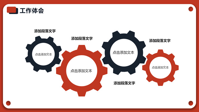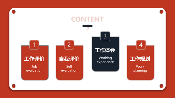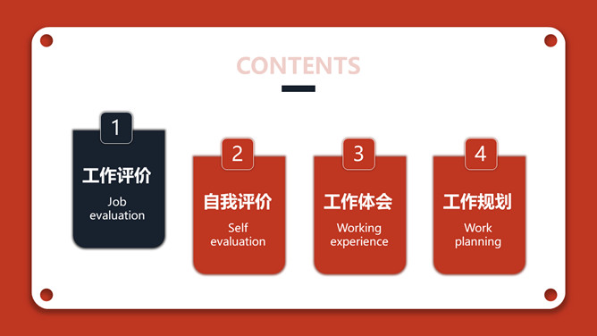 红色年终个人述职报告PPT模板。一套个人年终述职报告模板,红色主色调,经典红黑配色,简约设计,动态播放。