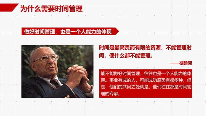 时间管理技能培训PPT课件模板。内容包括为什么需要时间管理、时间与时间管理概述、基本原理和具体措施。