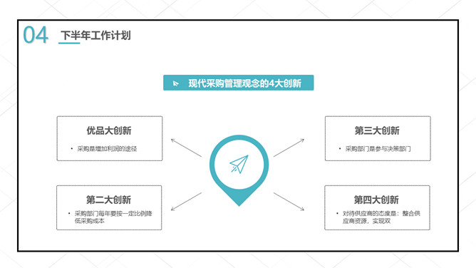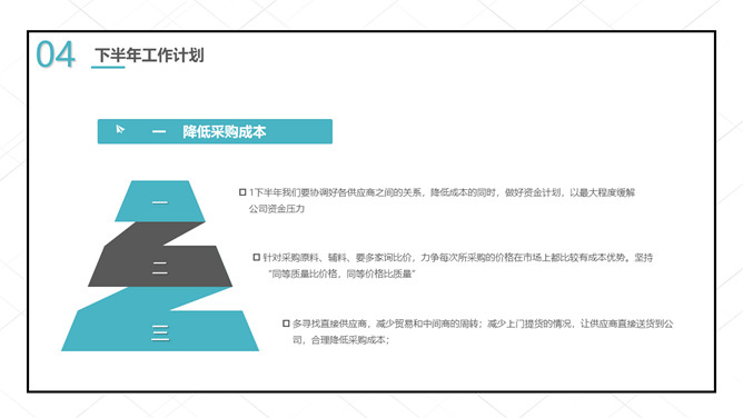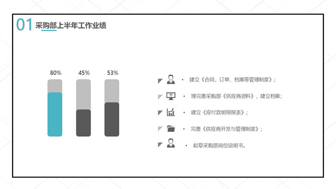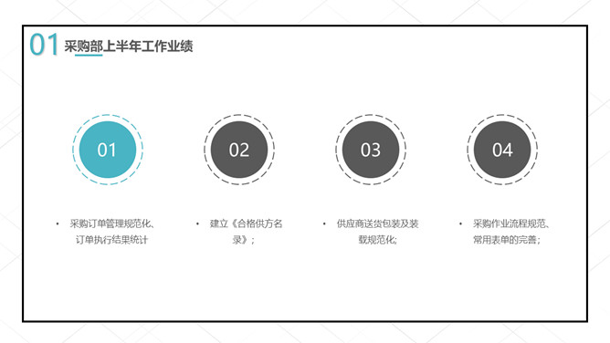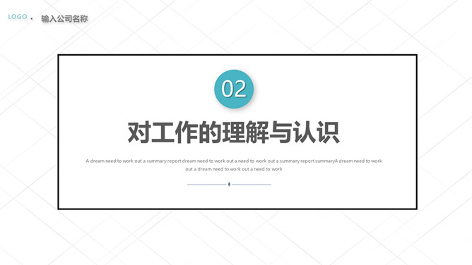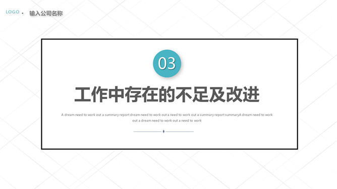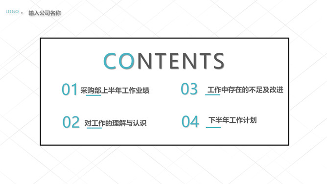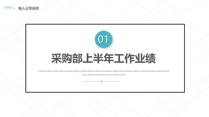 极简部门半年工作总结PPT模板。一套简洁大方工作总结汇报通用模板,极简设计,条纹格子背景,清新蓝灰配色。