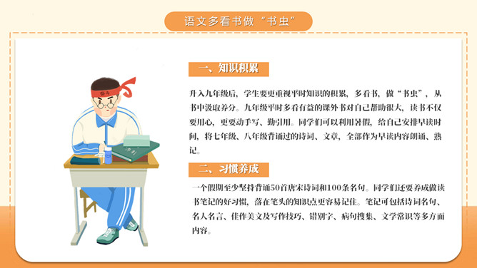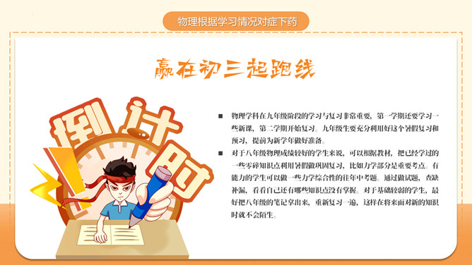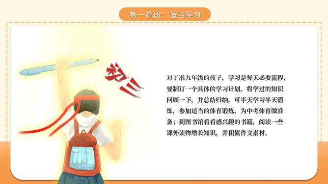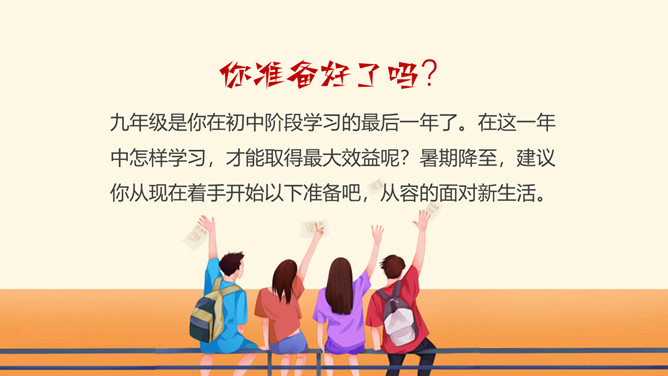 九年级是你在初中阶段学习的最后一年了。在这一年中怎样学习,才能取得最大效益呢?暑期降至,建议你从现在着手开始以下准备吧,从容的面对新生活。