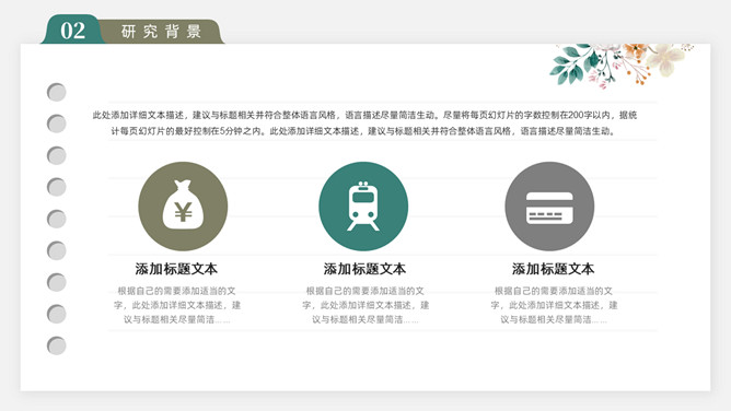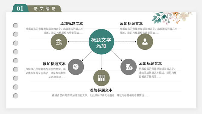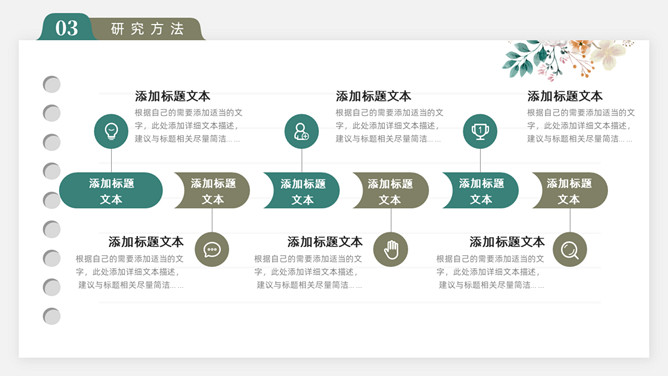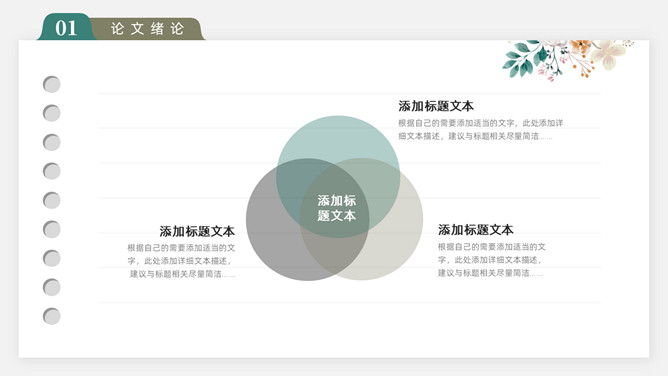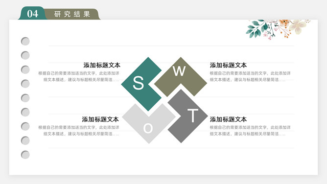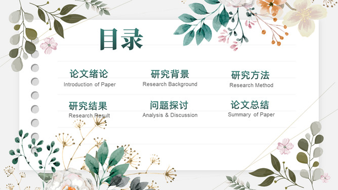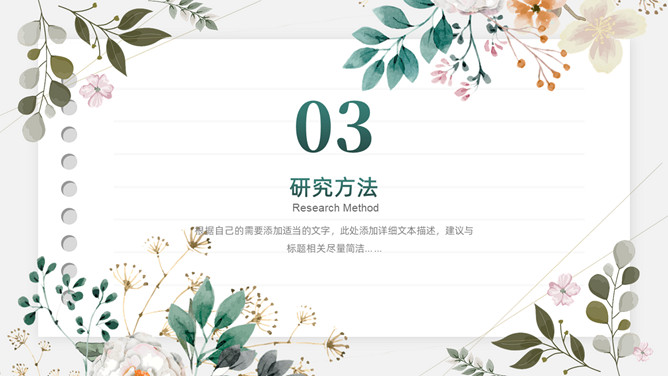 淡雅唯美水彩植物花草PPT模板。一套淡雅清新模板,水彩花草花边装饰,活页笔记本纸张背景,通用主题。