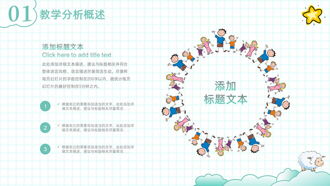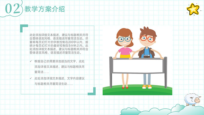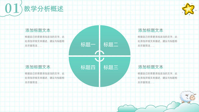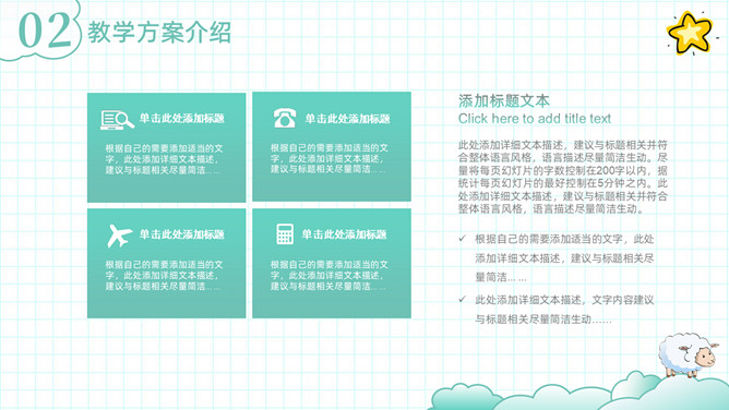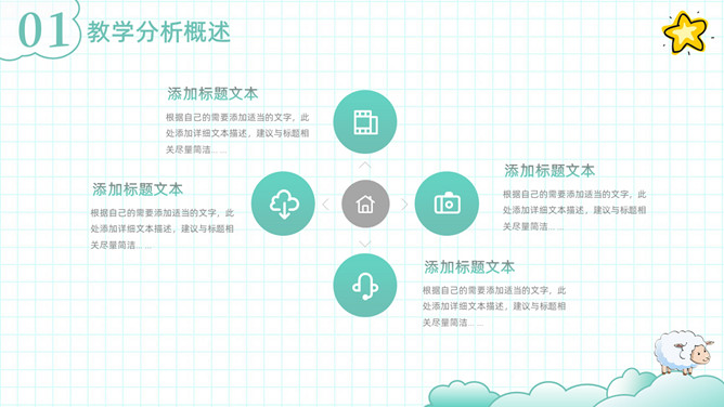 可爱清新卡通动物教学设计PPT模板
