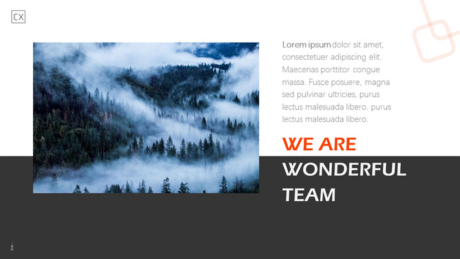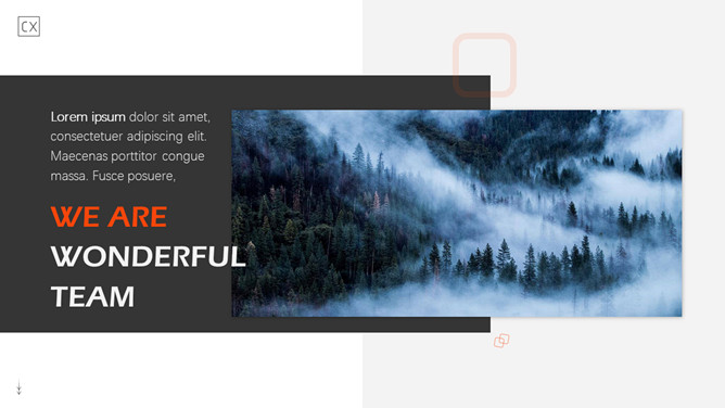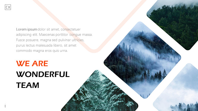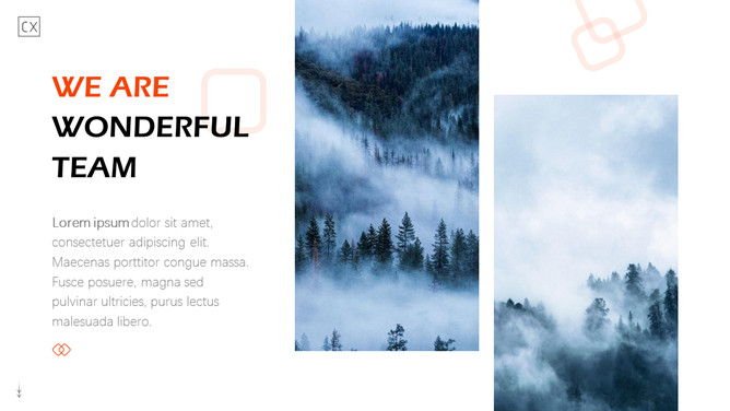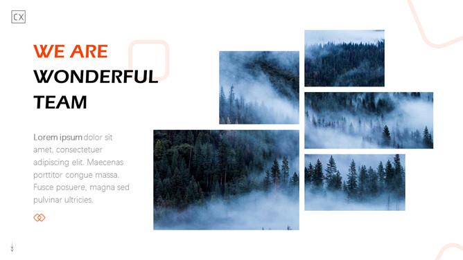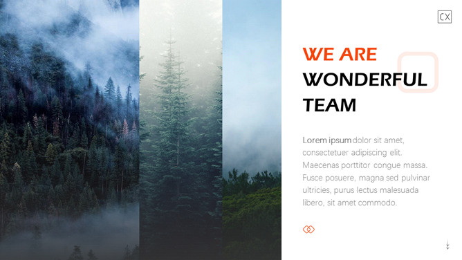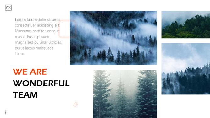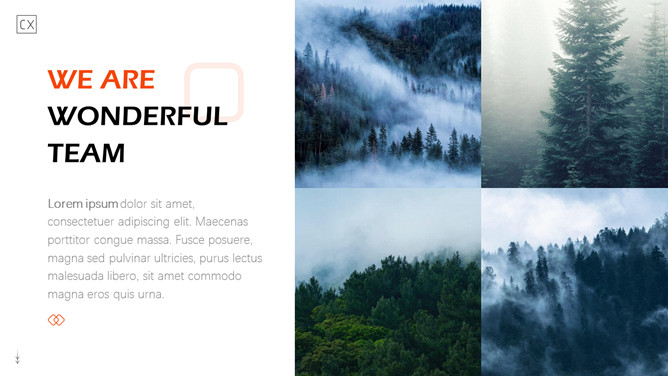 自然森林图文排版杂志风PPT模板。一套时尚杂志风模板,大自然森林图片素材,多种图文图片排版方式。