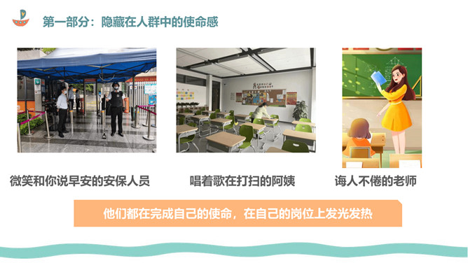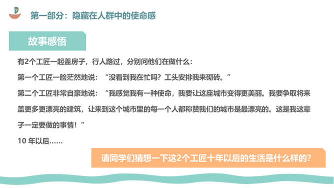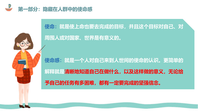 生活需要使命感班会PPT课件模板。内容包括隐藏在人群中的使命感、为什么生活需要使命感、绘制生命平衡轮,找到生活使命。