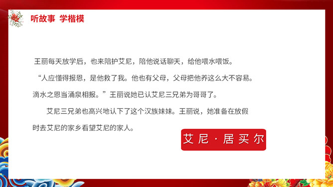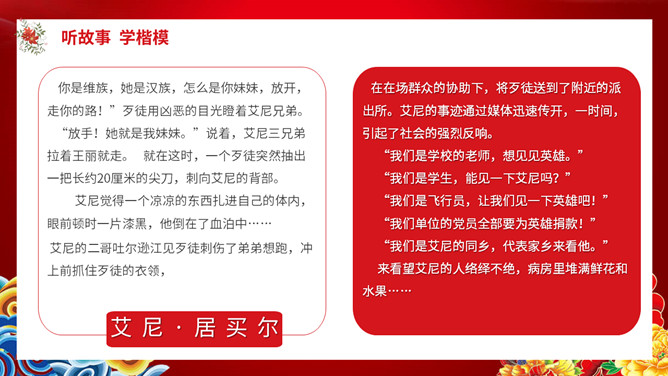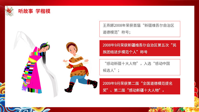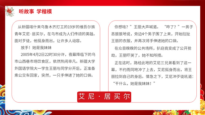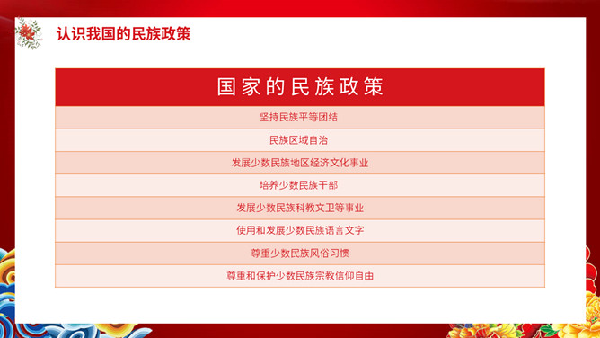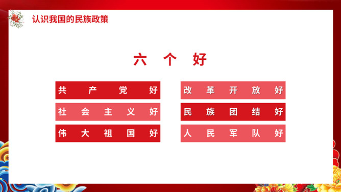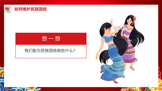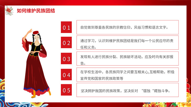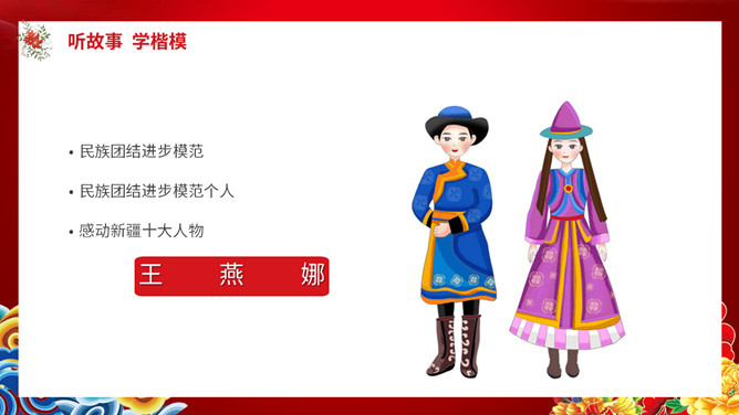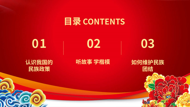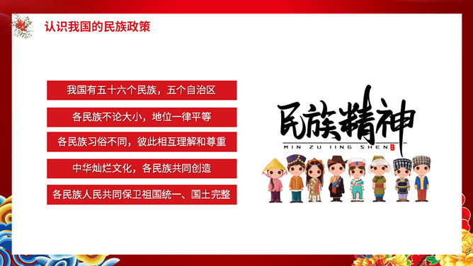 民族团结教育班会课件PPT模板。内容包括认识我国的民族政策、听故事 学楷模、如何维护民族团结。