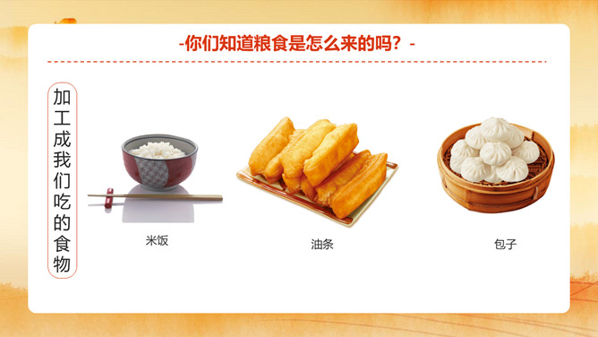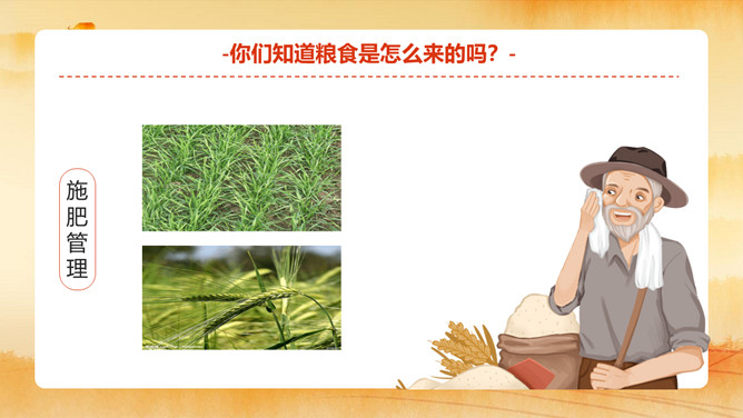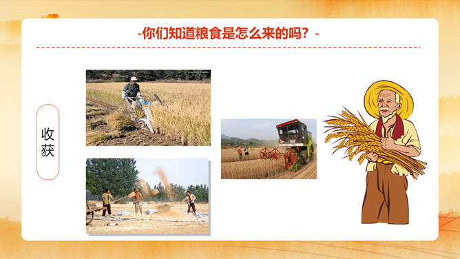 节约粮食主题班会PPT模板。小小一粒米,我们要珍惜。内容包括粮食知多少、粮食怎么来的、你浪费粮食了吗?