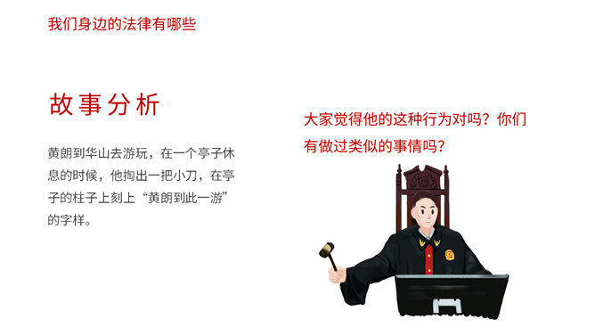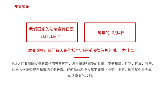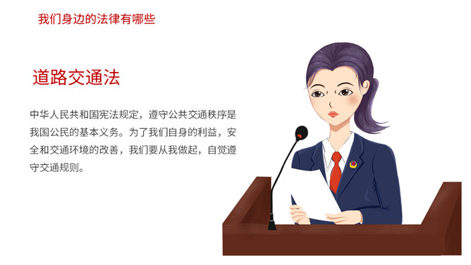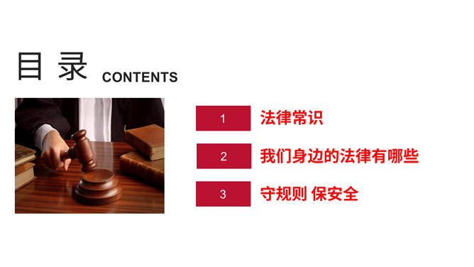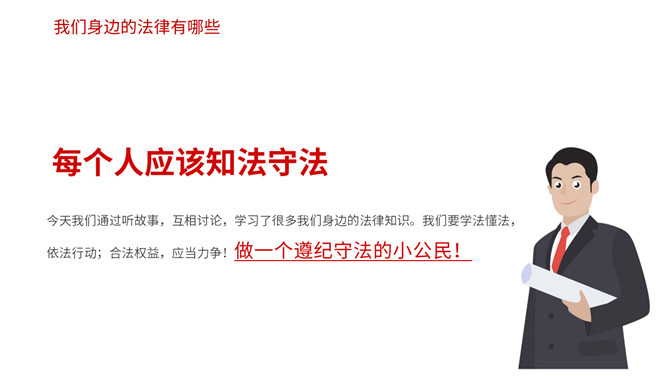 小学生法制教育班会课件PPT模板。包括法律常识、我们身边的法律有哪些、守规则 保安全等内容。