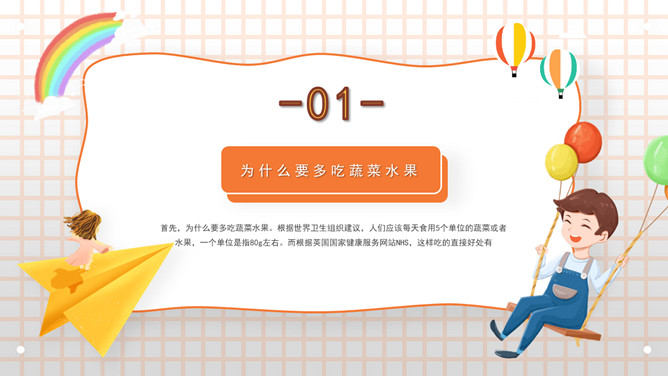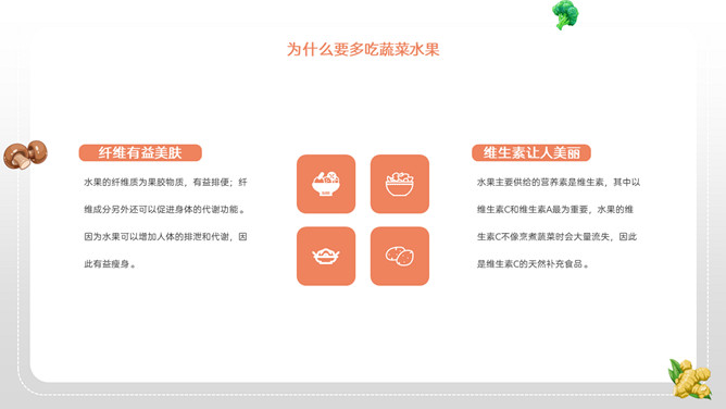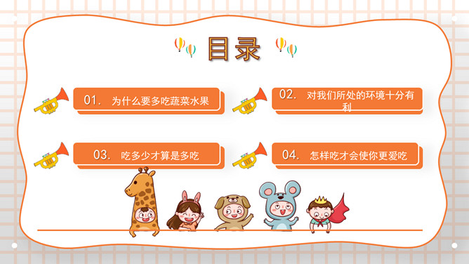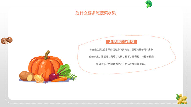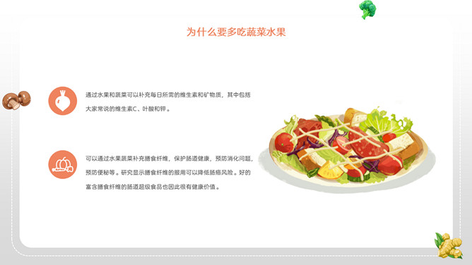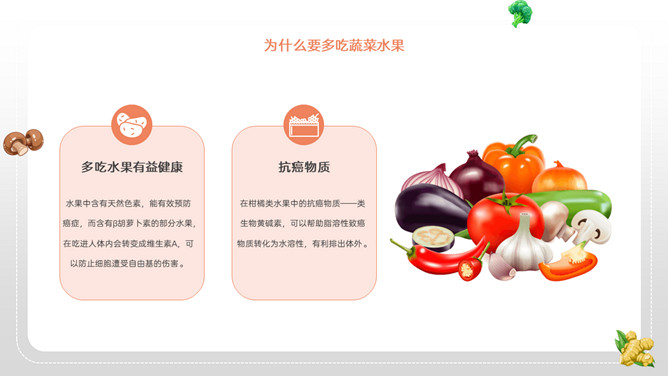 多吃蔬菜健康生活班会PPT模板。为什么要多吃蔬菜水果、对我们所处的环境十分有利、吃多少才算是多吃、怎样吃才会使你更爱吃。