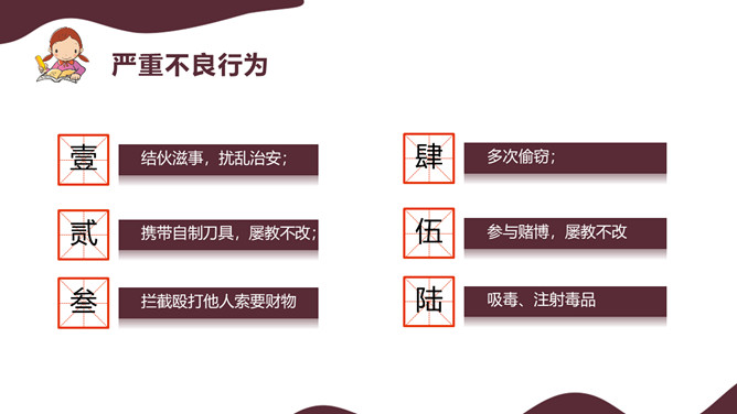 法制让我们安全的成长班会PPT模板。加强法制教育宣传,增强学生的自我保护意识,让学生养成学法、懂法、依法办事的好习惯,有效地树立和维护学校良好的学风以及社会的稳定发展。
