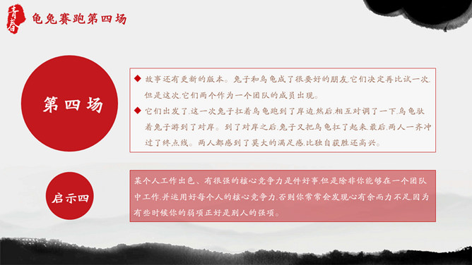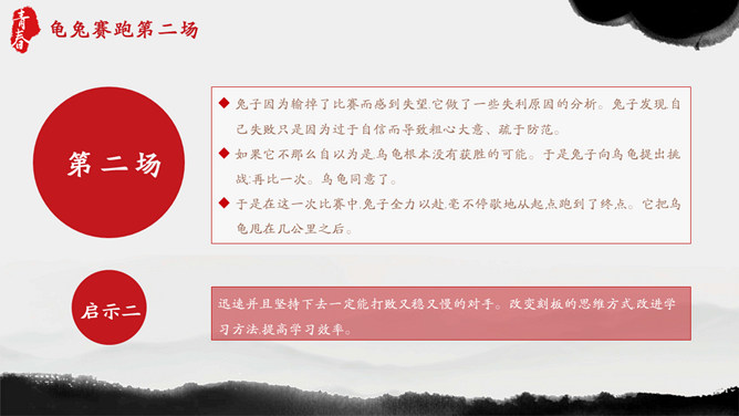 青春正能量励志主题班会PPT模板。内容包括狮子与羚羊、龟兔赛跑、馒头理论、快乐很重要。