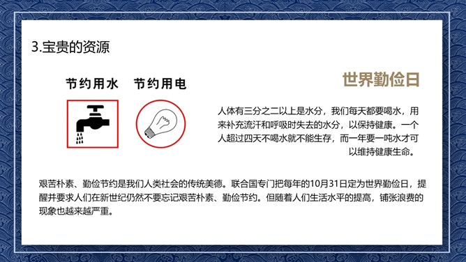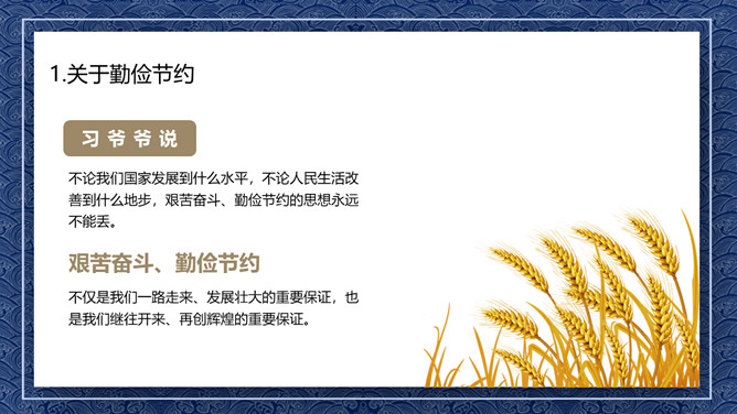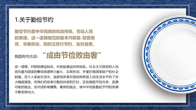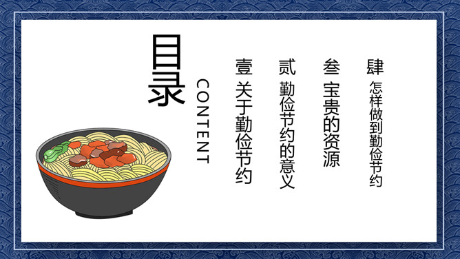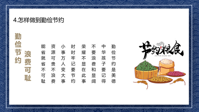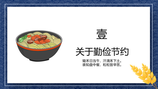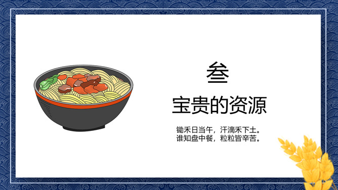 节约粮食光盘行动班会PPT模板。内容包括关于勤俭节约、勤俭节约的意义、宝贵的资源、怎样做到勤俭节约。