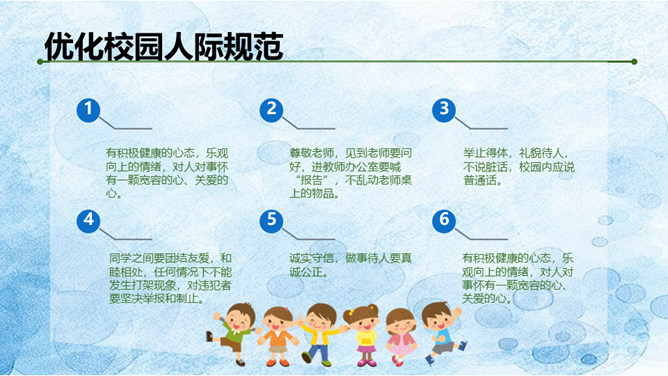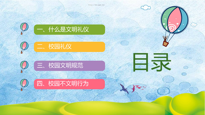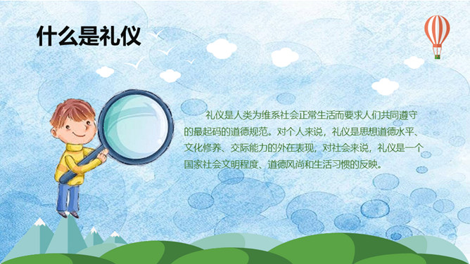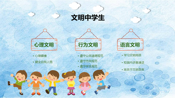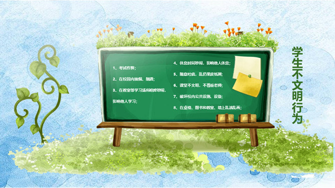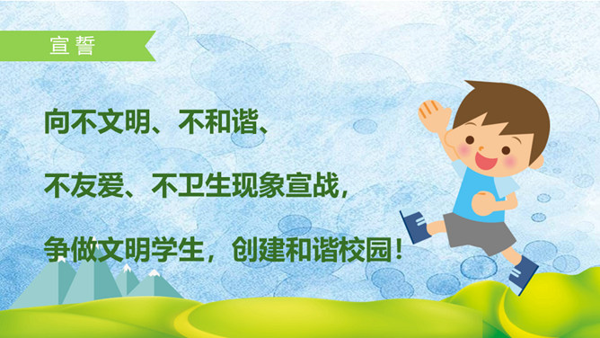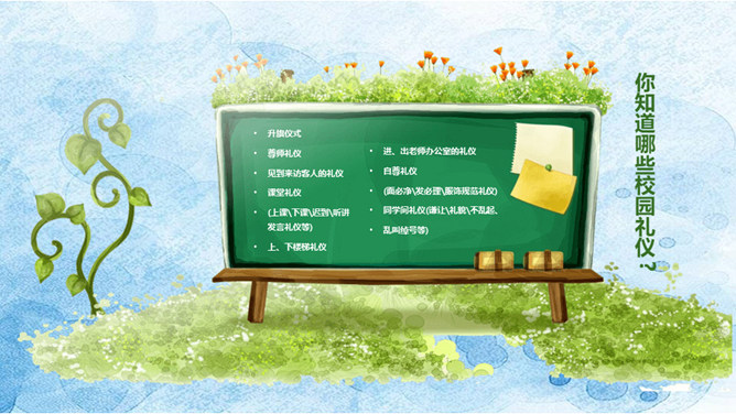 讲文明懂礼貌主题班会PPT模板。内容包括什么是文明礼仪、校园礼仪、校园文明规范、校园不文明行为。