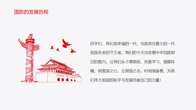 中小学加强国防教育班会PPT模板
