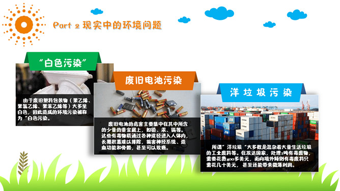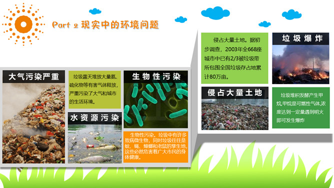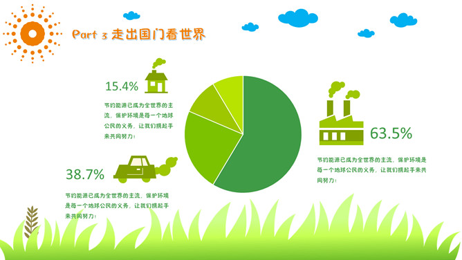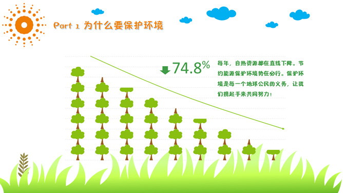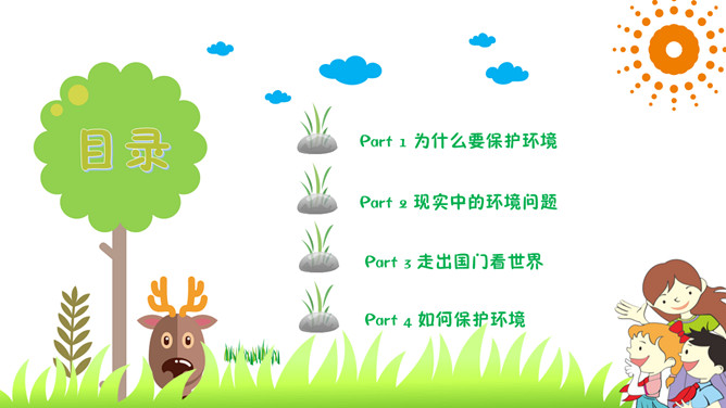 保护环境爱护家园环保教育PPT模板。包括为什么要保护环境、现实中的环境问题、走出国门看世界、如何保护环境。