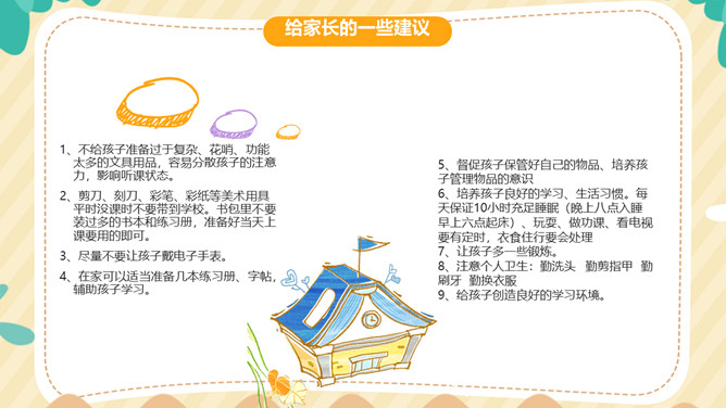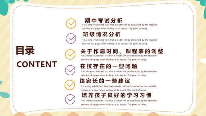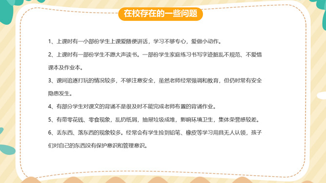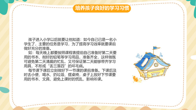 培养孩子学习习惯家长会PPT模板。内容包括期中考试分析、班级情况分析、关于作息时间课程表的调整、在校存在的一些问题、给家长的一些建议、培养孩子良好的学习习惯。