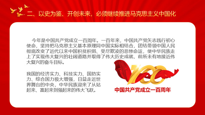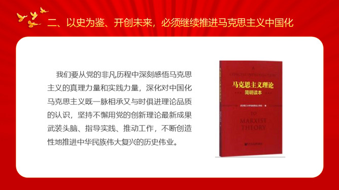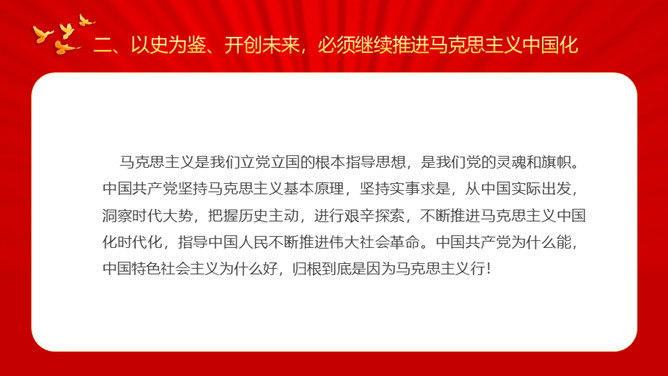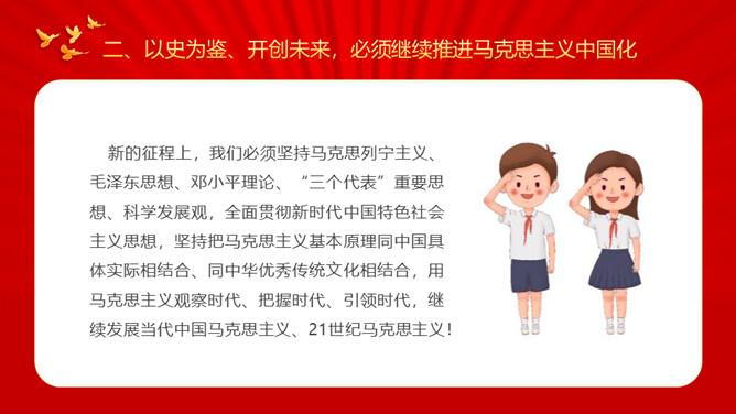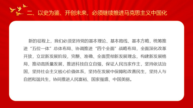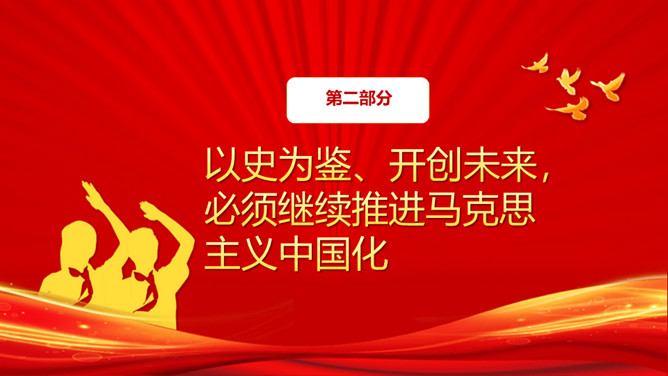 牢记初心使命开创美好未来PPT模板。内容包括牢记初心使命开创美好未来、必须继续推进马克思主义中国化、必须加快国防和军队现代化、必须不断推动构建人类命运共同体。