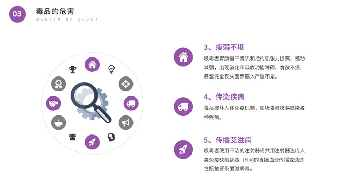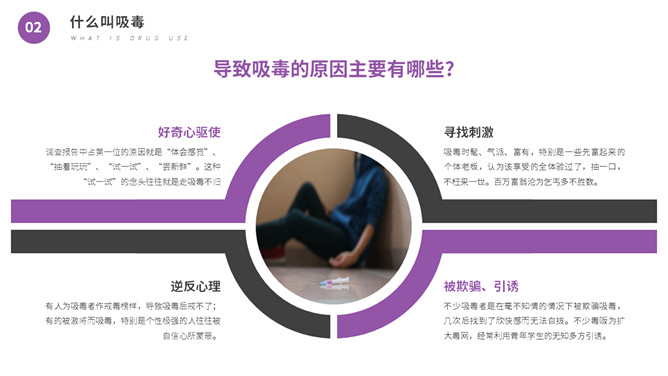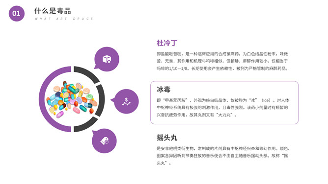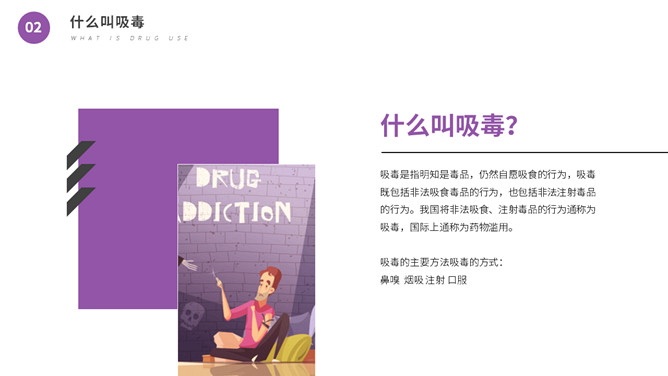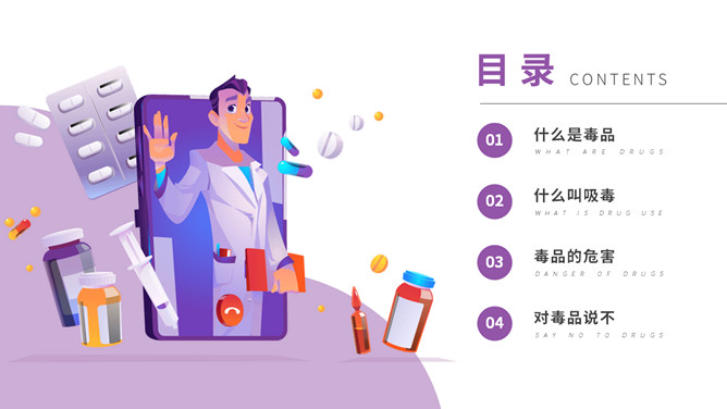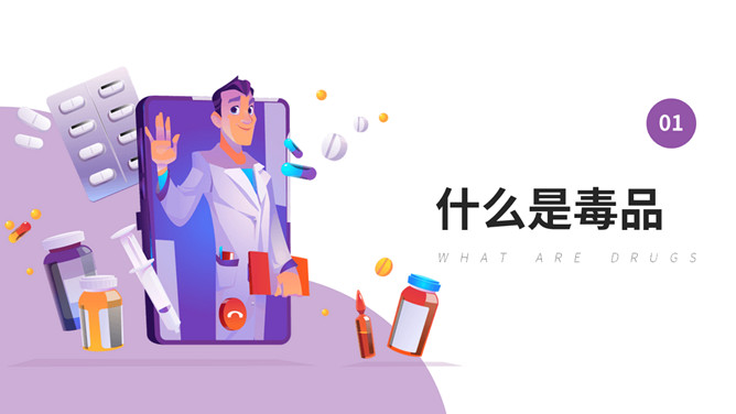 珍爱生命远离毒品教育PPT模板。内容包括什么是毒品、什么叫吸毒、毒品的危害、对毒品说不。