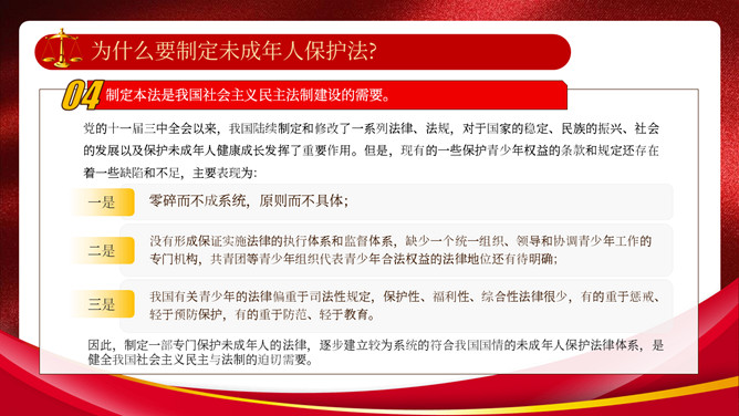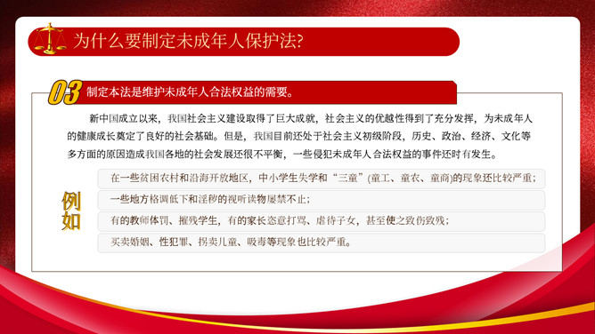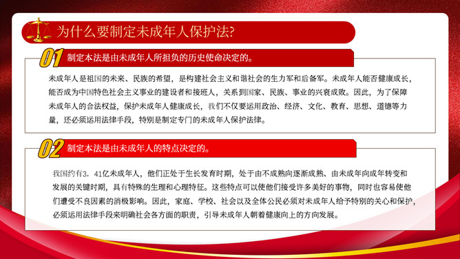 未成年人保护法宣传教育PPT模板。制定未成年人保护法,不仅是我国社会主义事业的长远要求,也是保护未成年人健康成长的迫切需要。