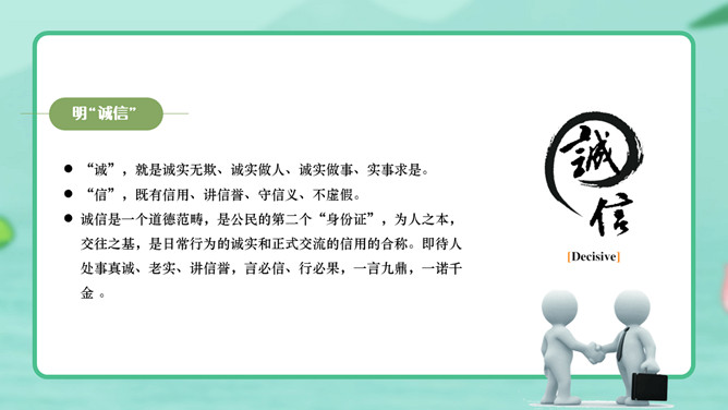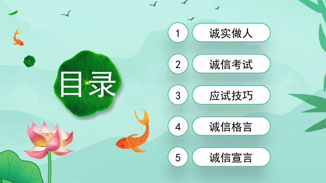 诚实做人诚信考试班会PPT模板。内容包括诚实做人、诚信考试、应试技巧、诚信格言、诚信宣言。