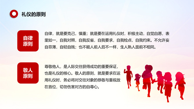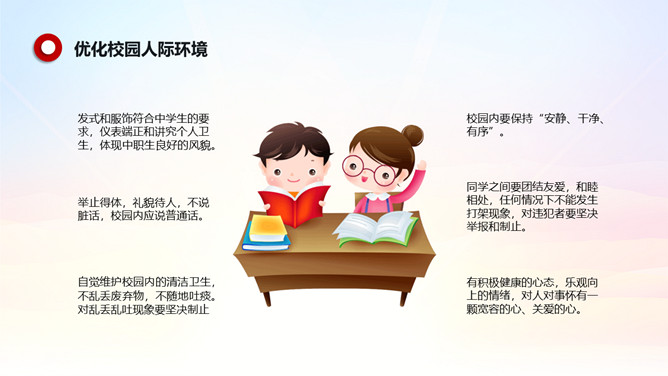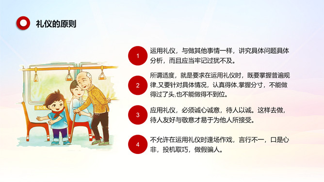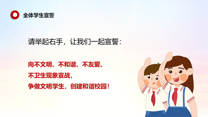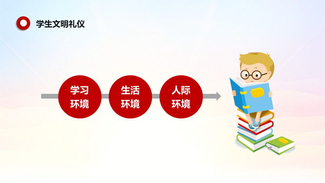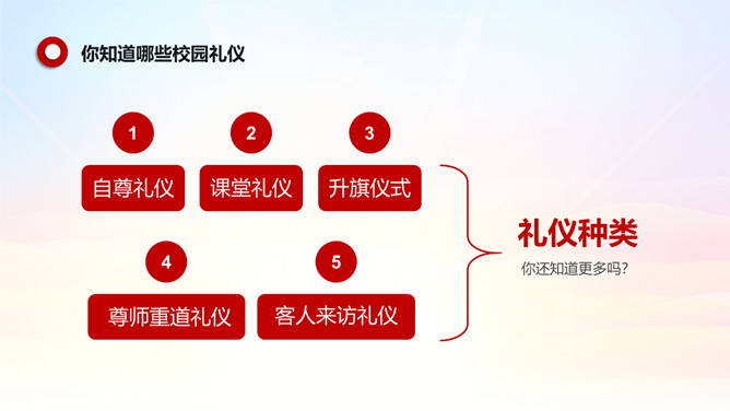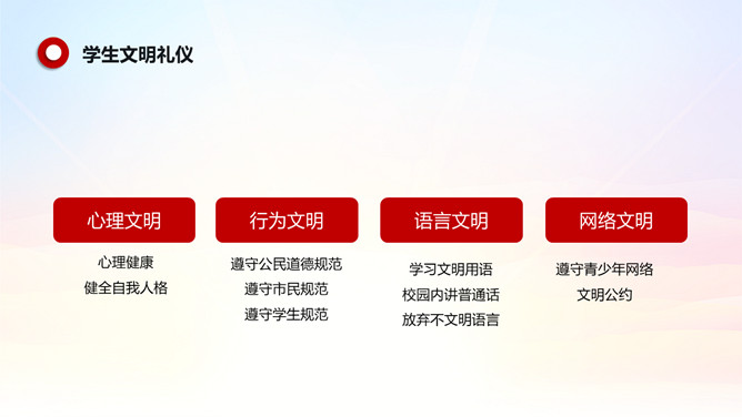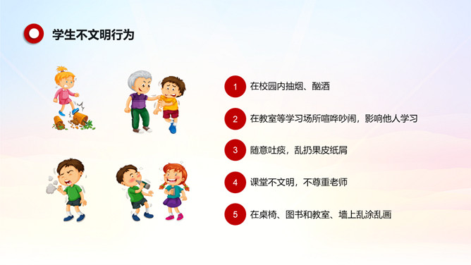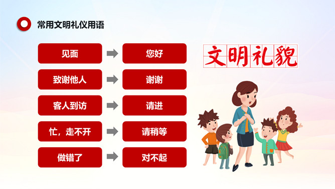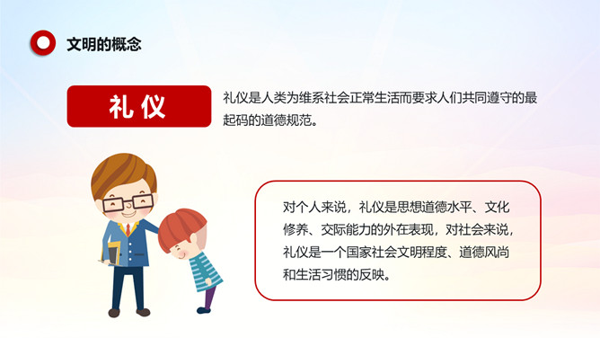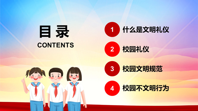 文明礼仪伴我行班会PPT模板。内容包括什么是文明礼仪、校园礼仪、校园文明规范、校园不文明行为。