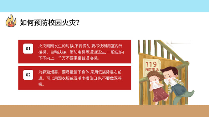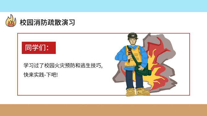 校园消防疏散演习班会PPT模板