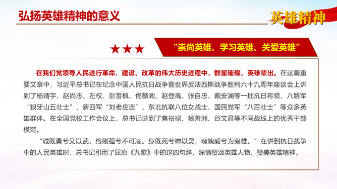 弘扬英雄精神党课PPT模板