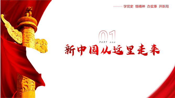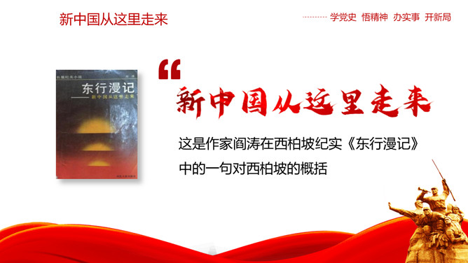 西柏坡精神价值与时代内涵PPT模板。内容包括新中国从这里走来、西柏坡精神的历史渊源和精神内涵、西柏坡精神解读。