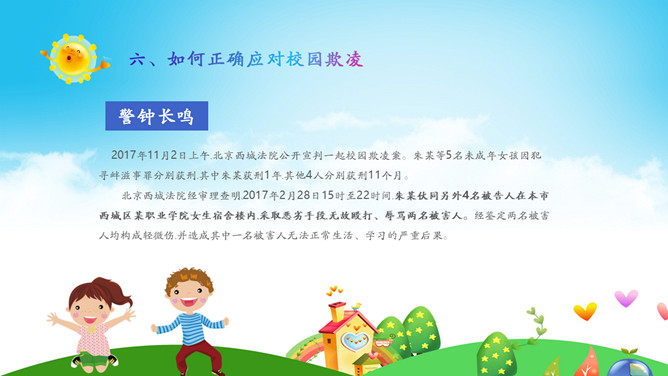 远离校园暴力拒绝校园欺凌班会PPT模板