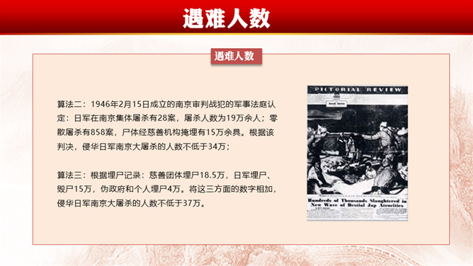 南京大屠杀(Nanjing Massacre)指1931至1945年中国抗日战争期间 ,中华民国在南京保卫战中失利、首都南京于1937年12月13日沦陷后,侵华日军于南京及附近地区进行长达6周的有组织、有计划、有预谋的大屠杀和奸淫、放火、抢劫等血腥暴行,在南京大屠杀中,大量平民及战俘被日军杀害,无数家庭支离破碎,南京大屠杀的遇难人数超过30万。