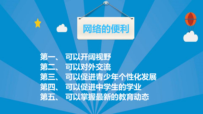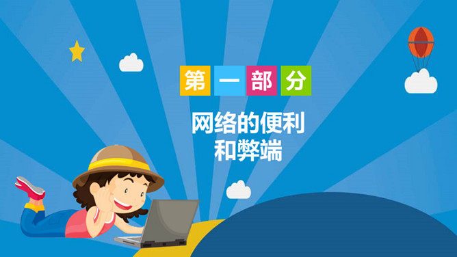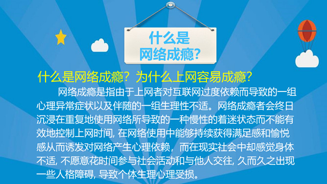 认识网络远离网瘾班会PPT模板。内容包括:网络的便利和弊端、什么是网络成瘾?青少年为什么容易染上网瘾、克制网瘾建议。