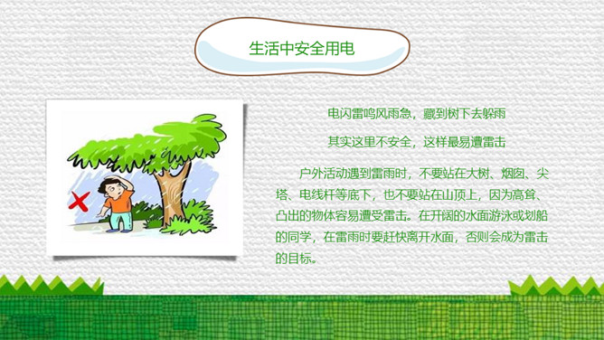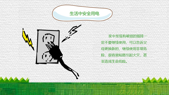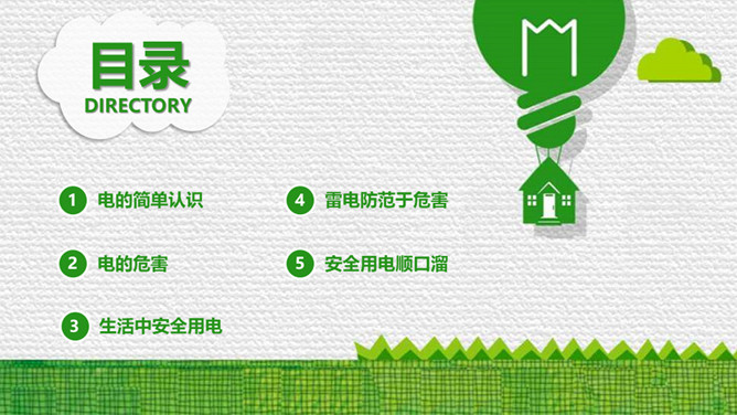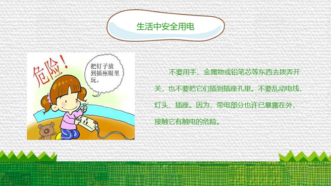 防触电安全用电班会PPT模板。内容包括电的简单认识、电的危害、生活中安全用电、雷电防范于危害、安全用电顺口溜。