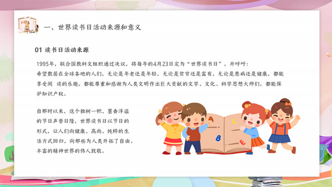 卡通儿童世界读书日PPT模板
