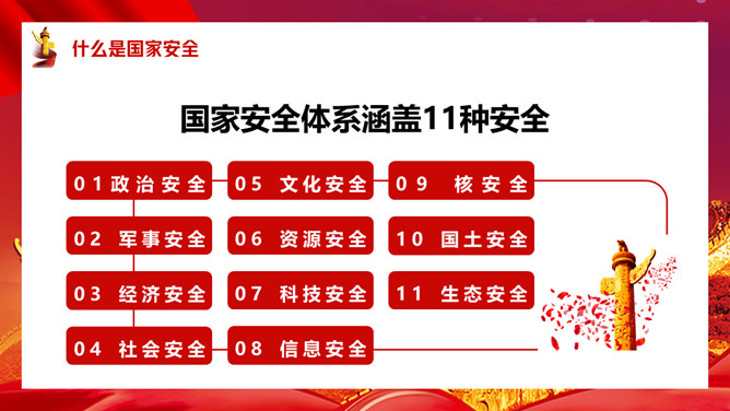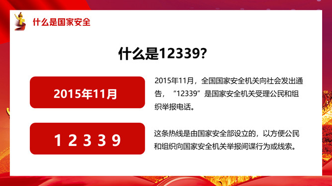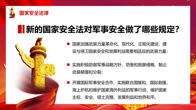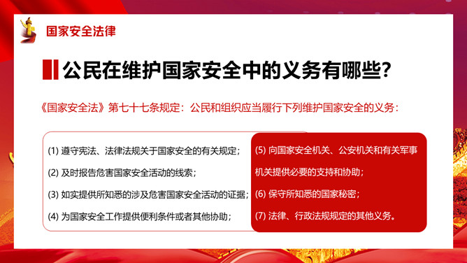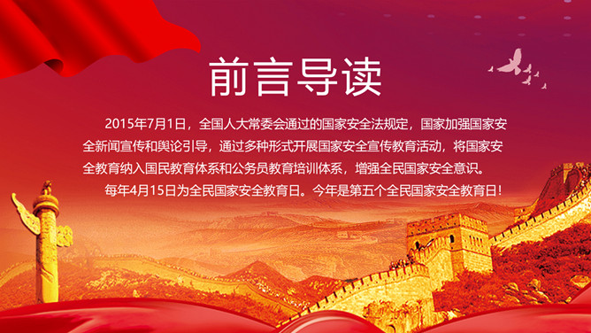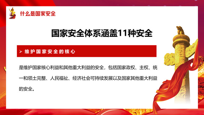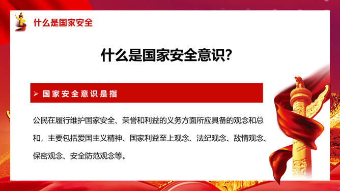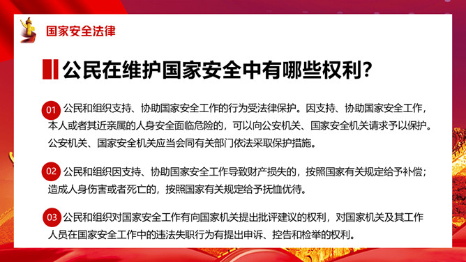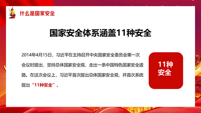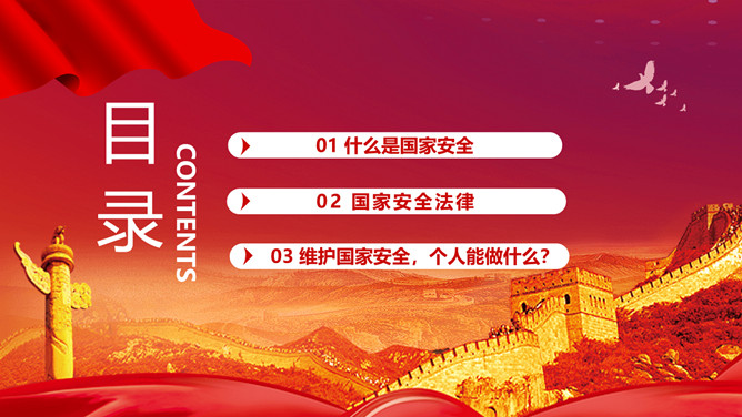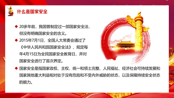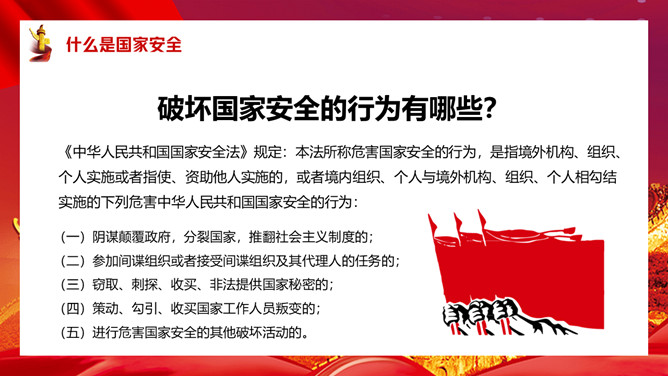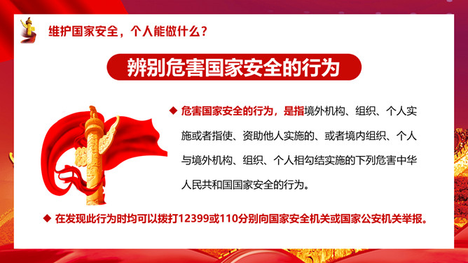 国家利益高国家安全教育日PPT模板。内容包括什么是国家安全、国家安全法律、维护国家安全个人能做什么?