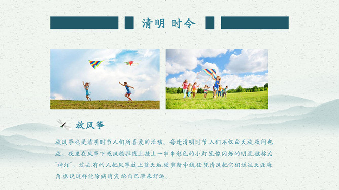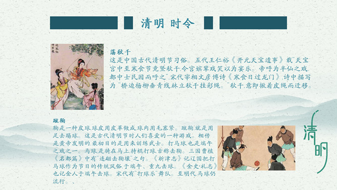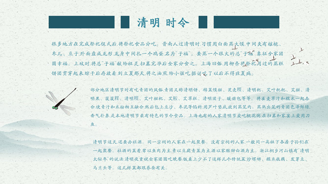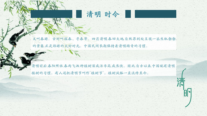柳树燕子清明节介绍PPT模板。内容包括清明节的诗歌、清明节的食物、清明节的民俗、清明节的由来。