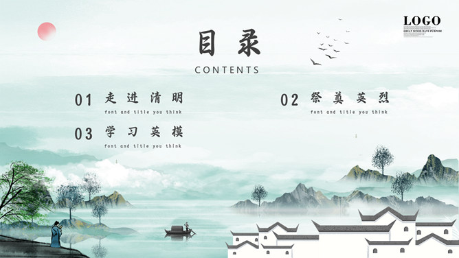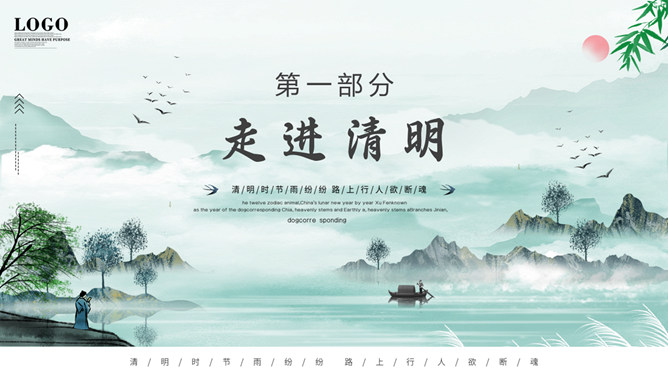 水墨风景画清明幻灯片模板