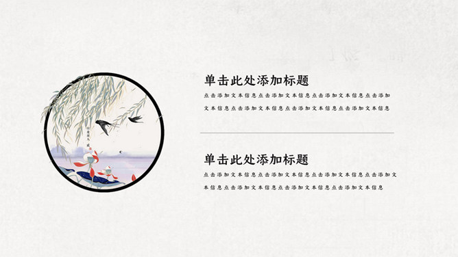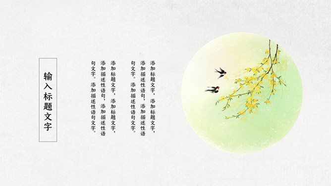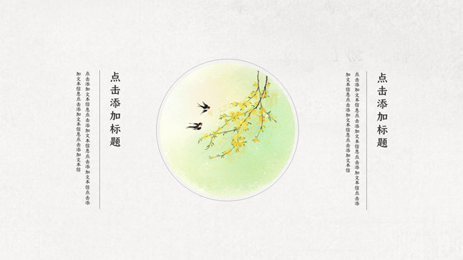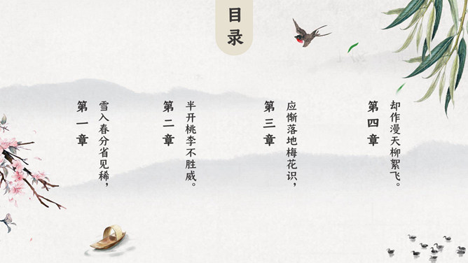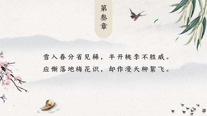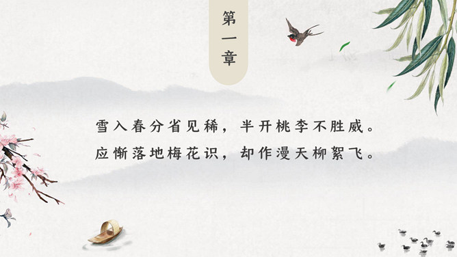 春天燕子春分节气PPT模板。一套春分节气模板,春天燕子、桃花、柳树背景,极简中国风风格。