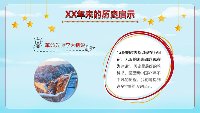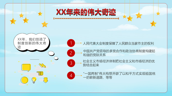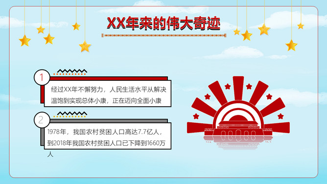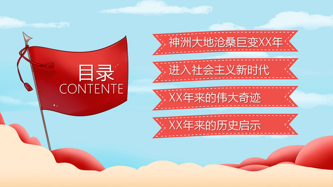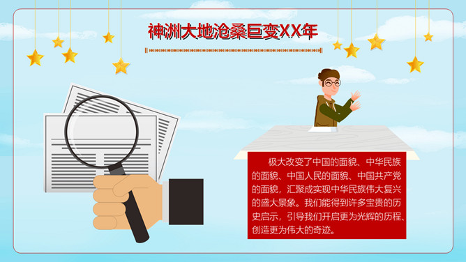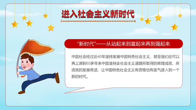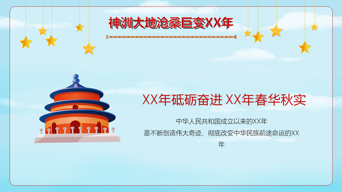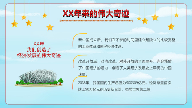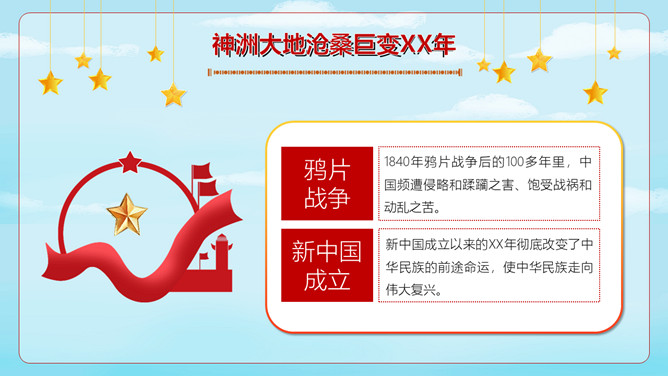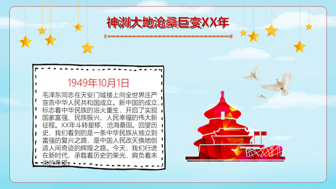 小学生国庆节班会PPT模板。内容包括神洲大地沧桑巨变、进入社会主义新时代、伟大奇迹和历史启示。