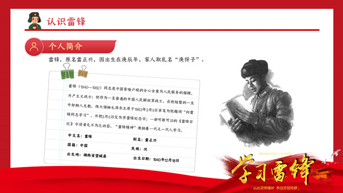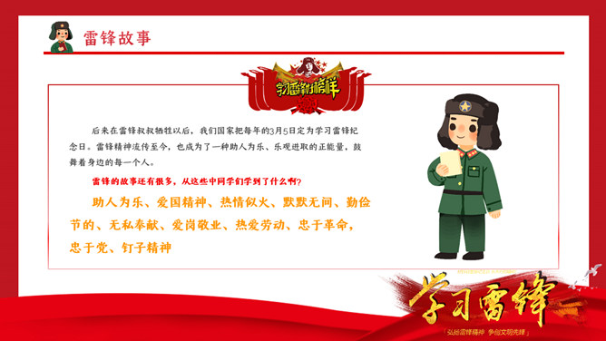 学雷锋纪念日主题班会PPT模板