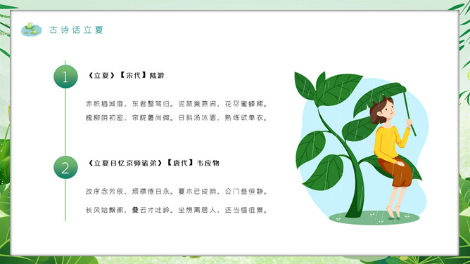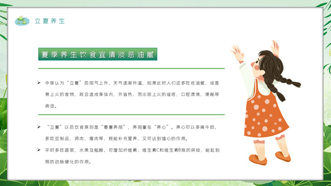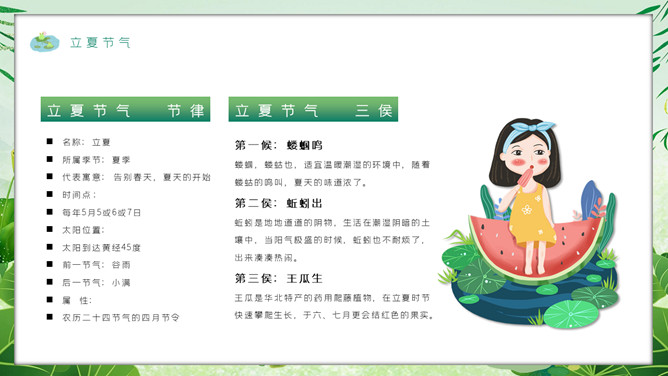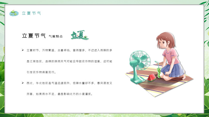 女孩叶子立夏节气PPT模板