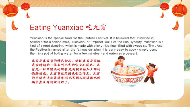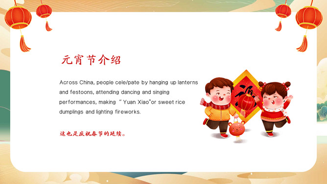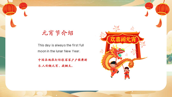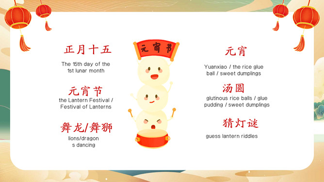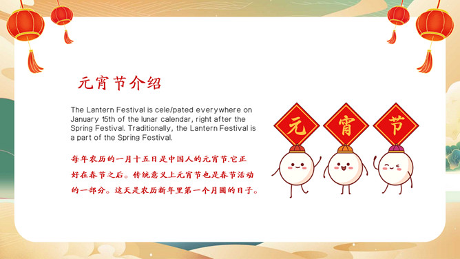 元宵节英文介绍班会PPT模板