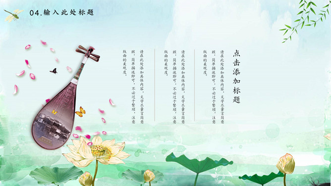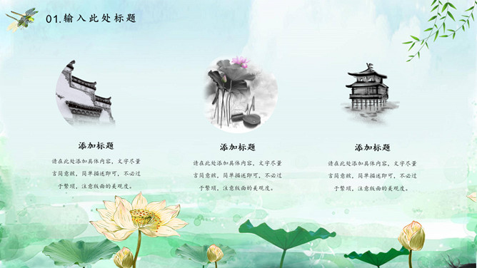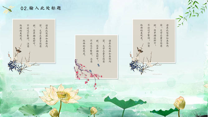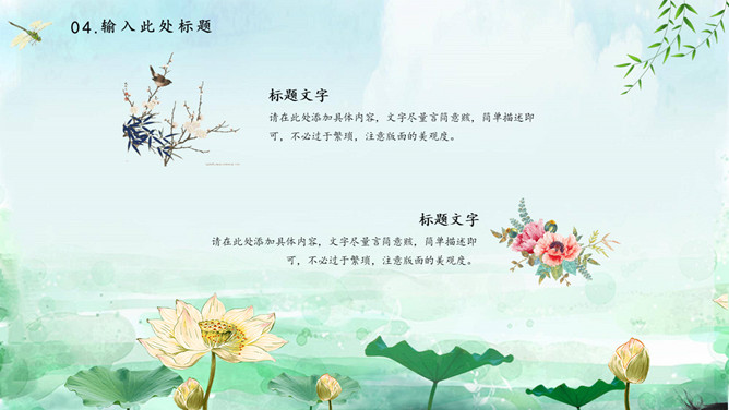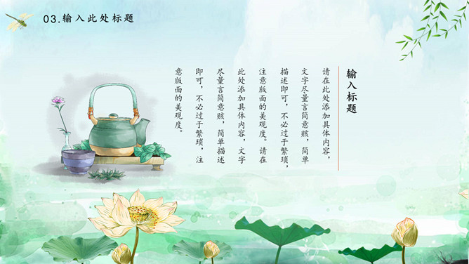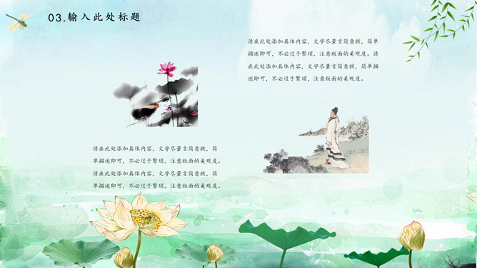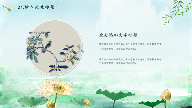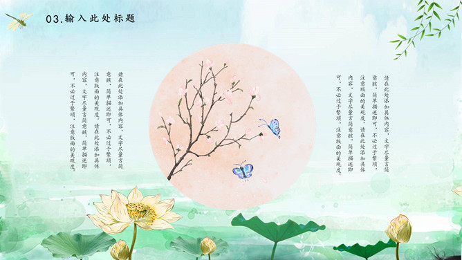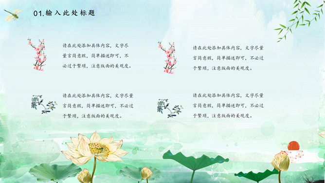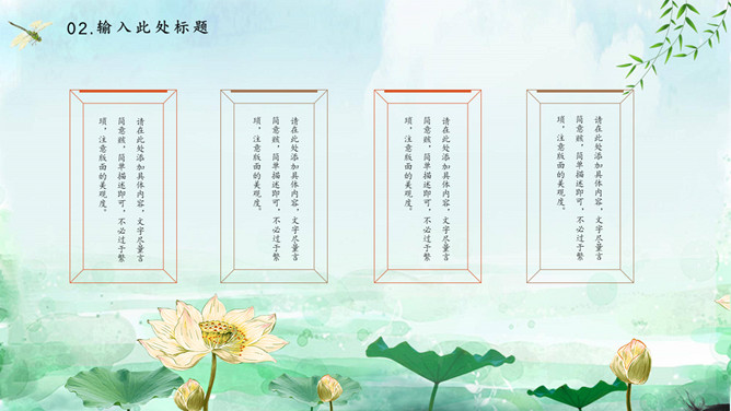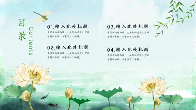 蜻蜓荷花立春节气PPT模板。一套立春节气主题模板,水彩荷花、蜻蜓背景,动态播放效果。