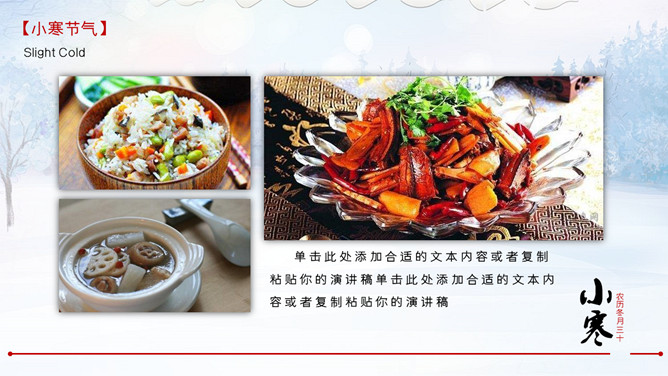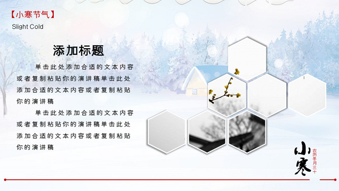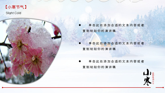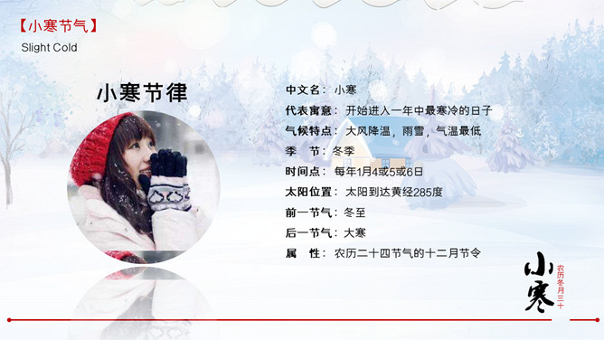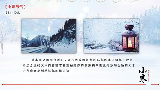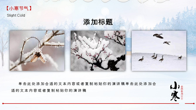雪花纷飞小寒节气PPT模板