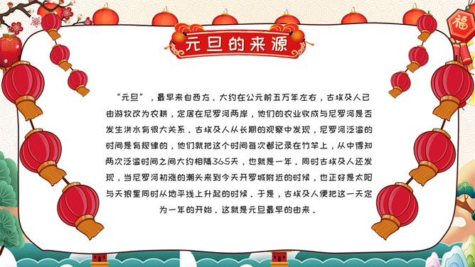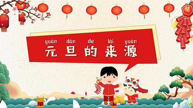 庆元旦迎新年班会PPT模板。内容包括元旦的来源、中国的元旦、西方人的元旦、元旦百科知识竞赛、元旦的祝福。