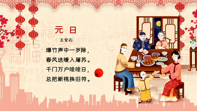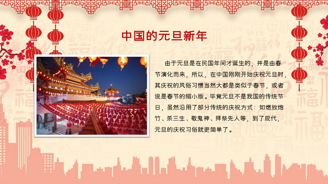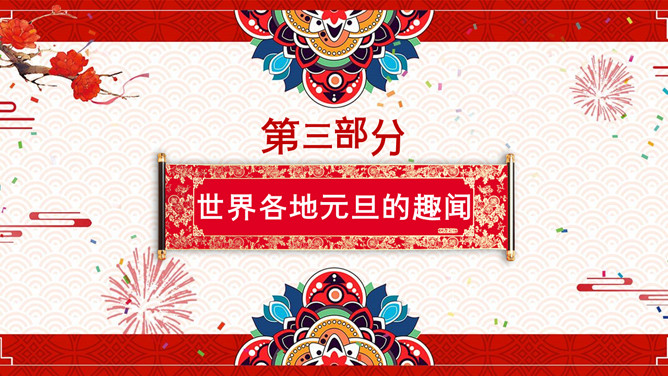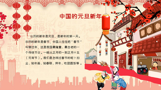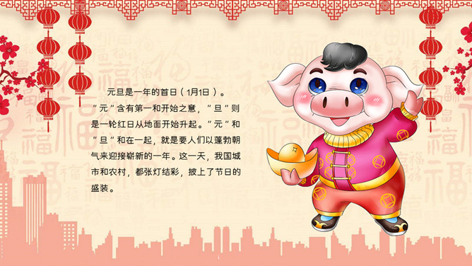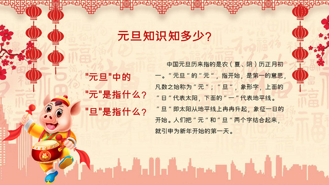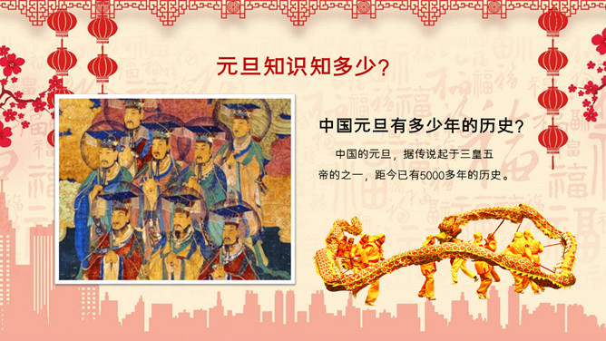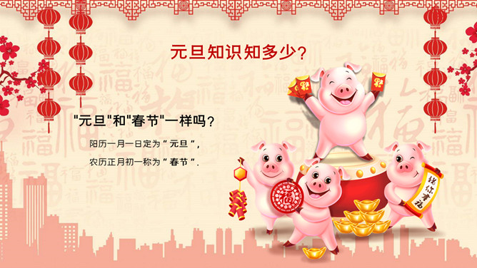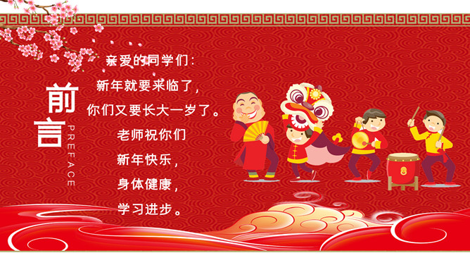 舞狮庆元旦迎新年PPT模板。新年新气象,在新的一年即将到来之际,向老师们和同学们送上新年的祝福:祝老师们在新的一年工作顺利,幸福安康。祝同学们在新的一年学习进步,更上一层楼。