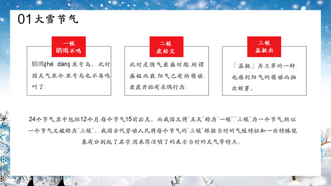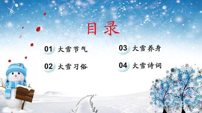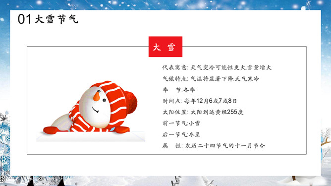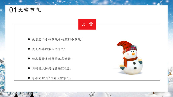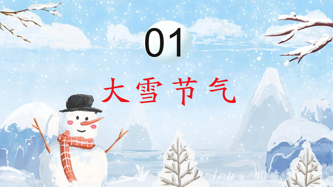 雪花雪人大寒节气PPT模板