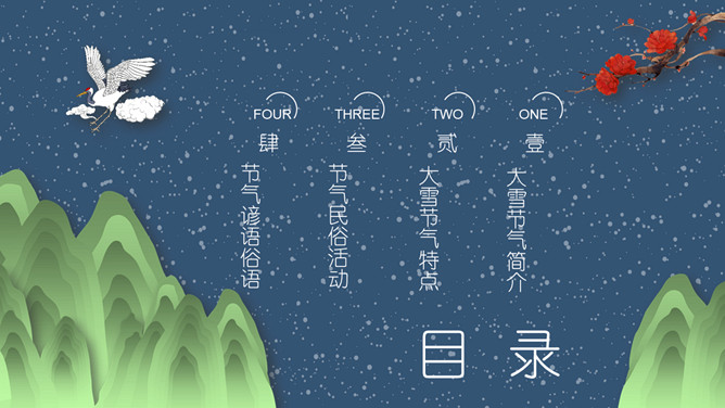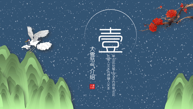 山峰仙鹤大雪节气PPT模板