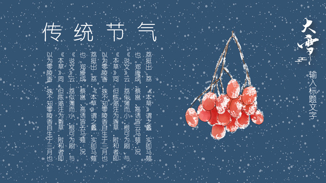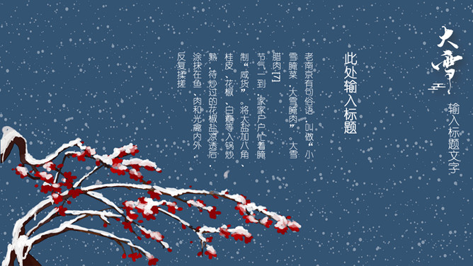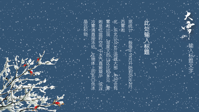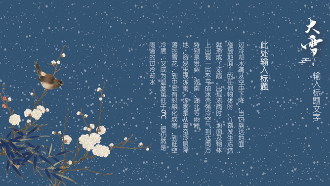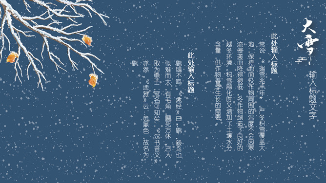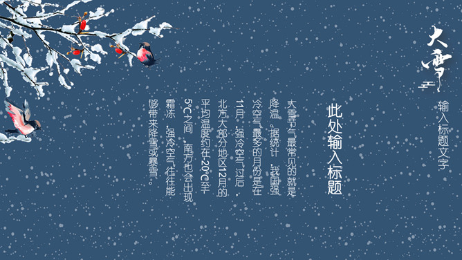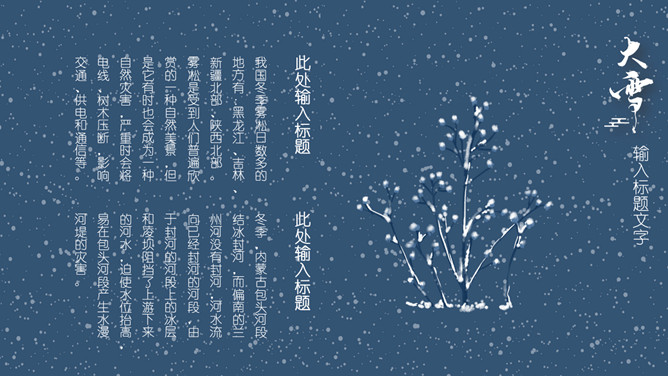 雪花纷飞小寒节气PPT模板