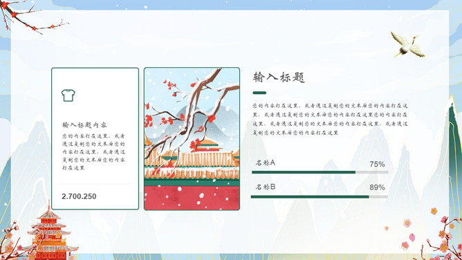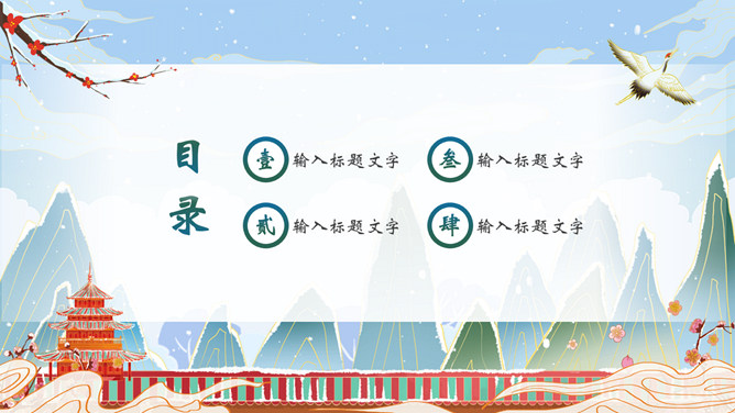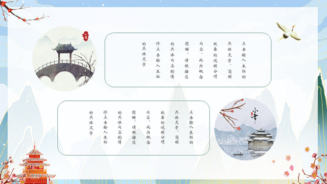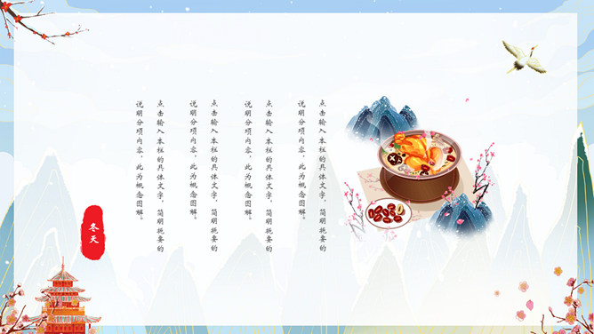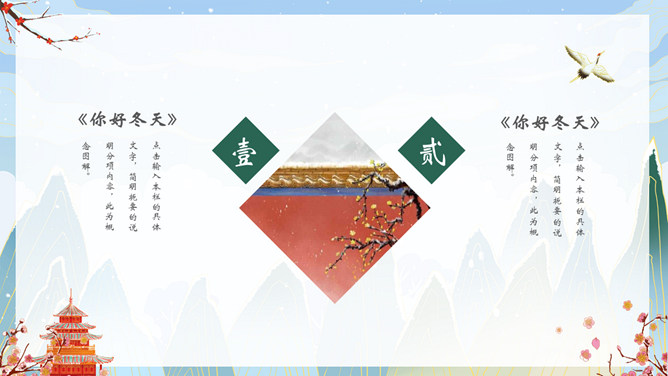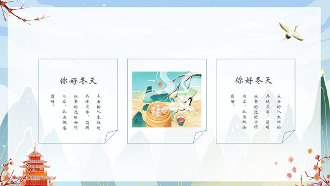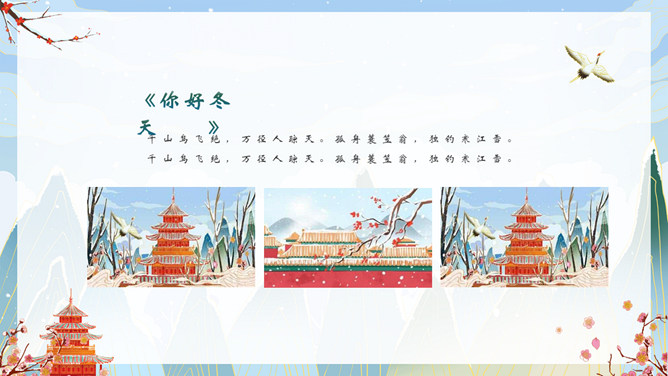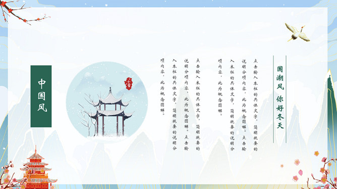 国潮风你好冬天PPT模板。一套冬天主题模板,精美国潮风格设计,适合冬季相关主题。