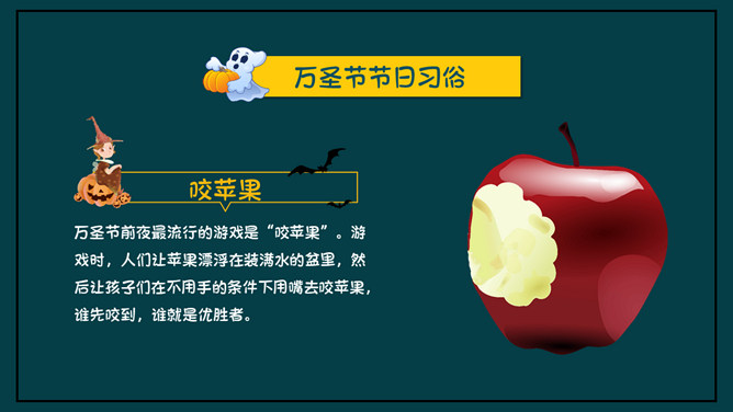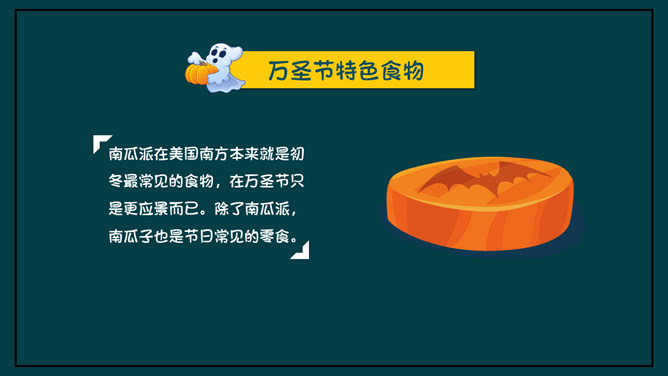 万圣节介绍PPT模板下载。内容包括万圣节节日由来、节日习俗、特色食物、节日鬼怪。