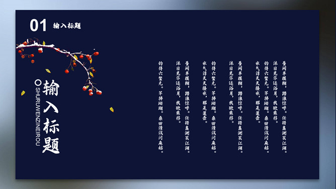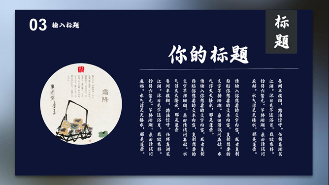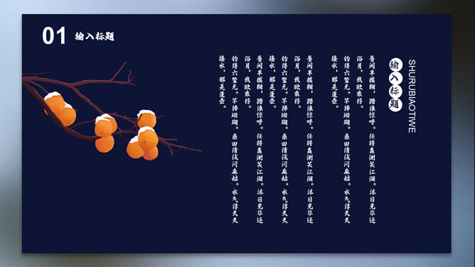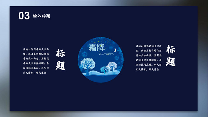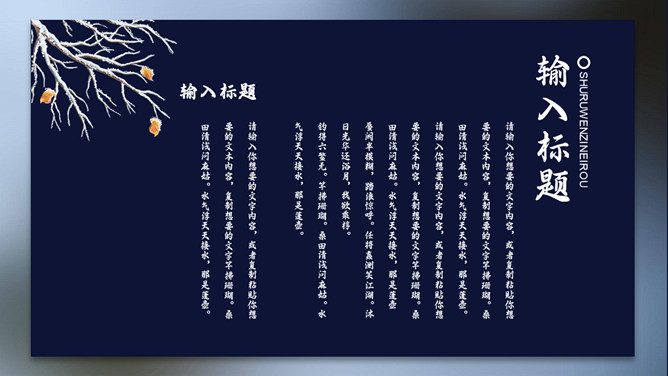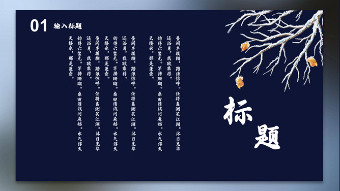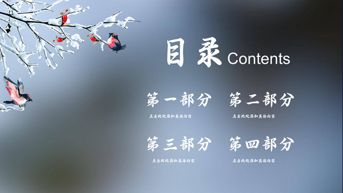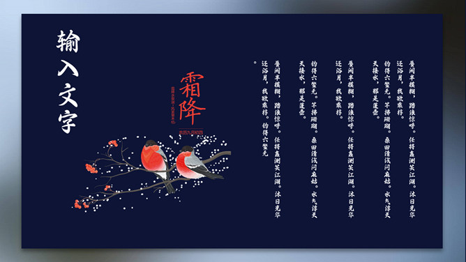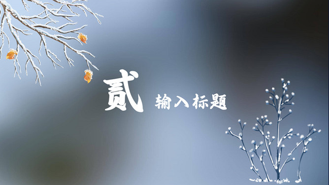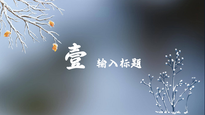 树枝小鸟霜降节气PPT模板。一套霜降节气主题模板,落雪的树枝和枝头上的小鸟背景。